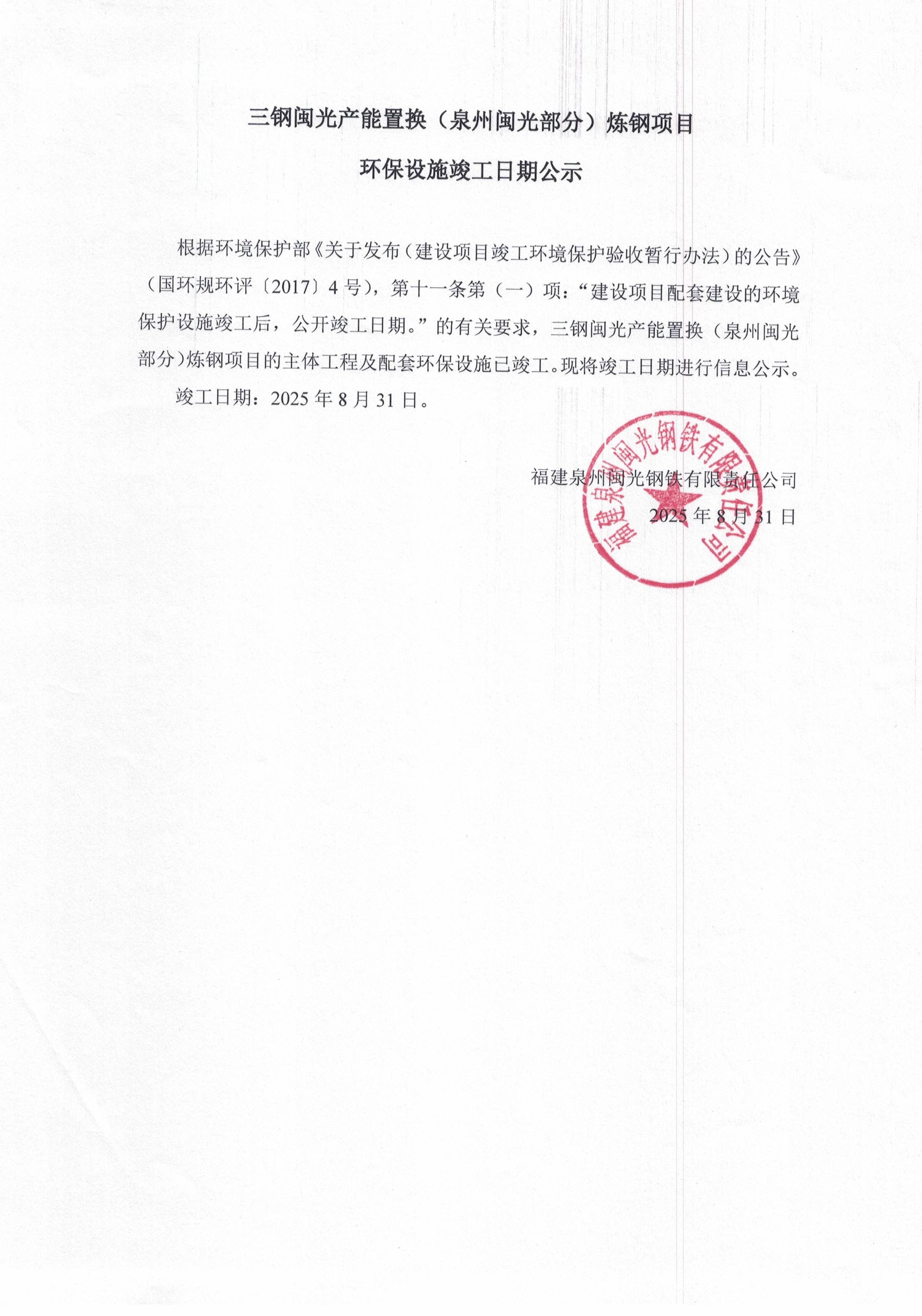 三鋼閩光產(chǎn)能置換(泉州閩光部分)煉鋼項(xiàng)目環(huán)保設(shè)施竣工日期公示