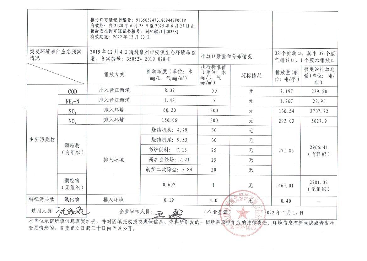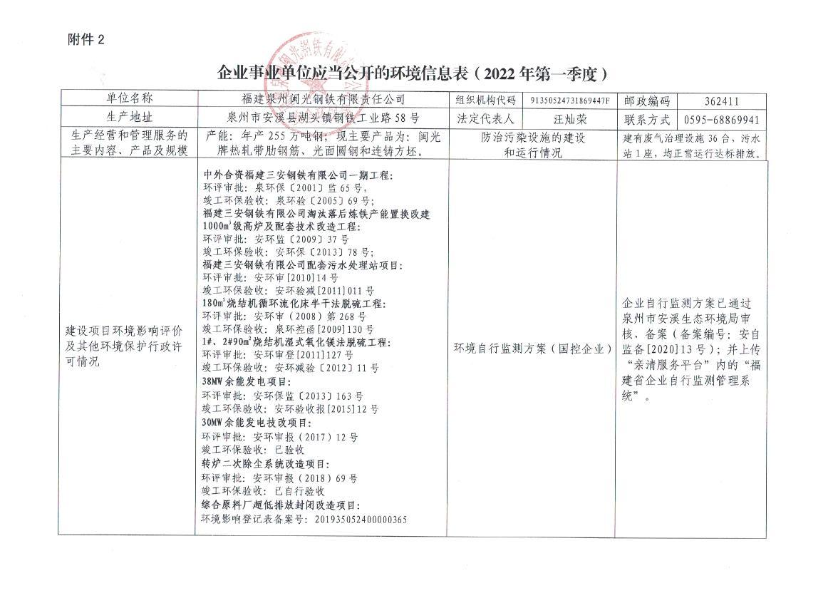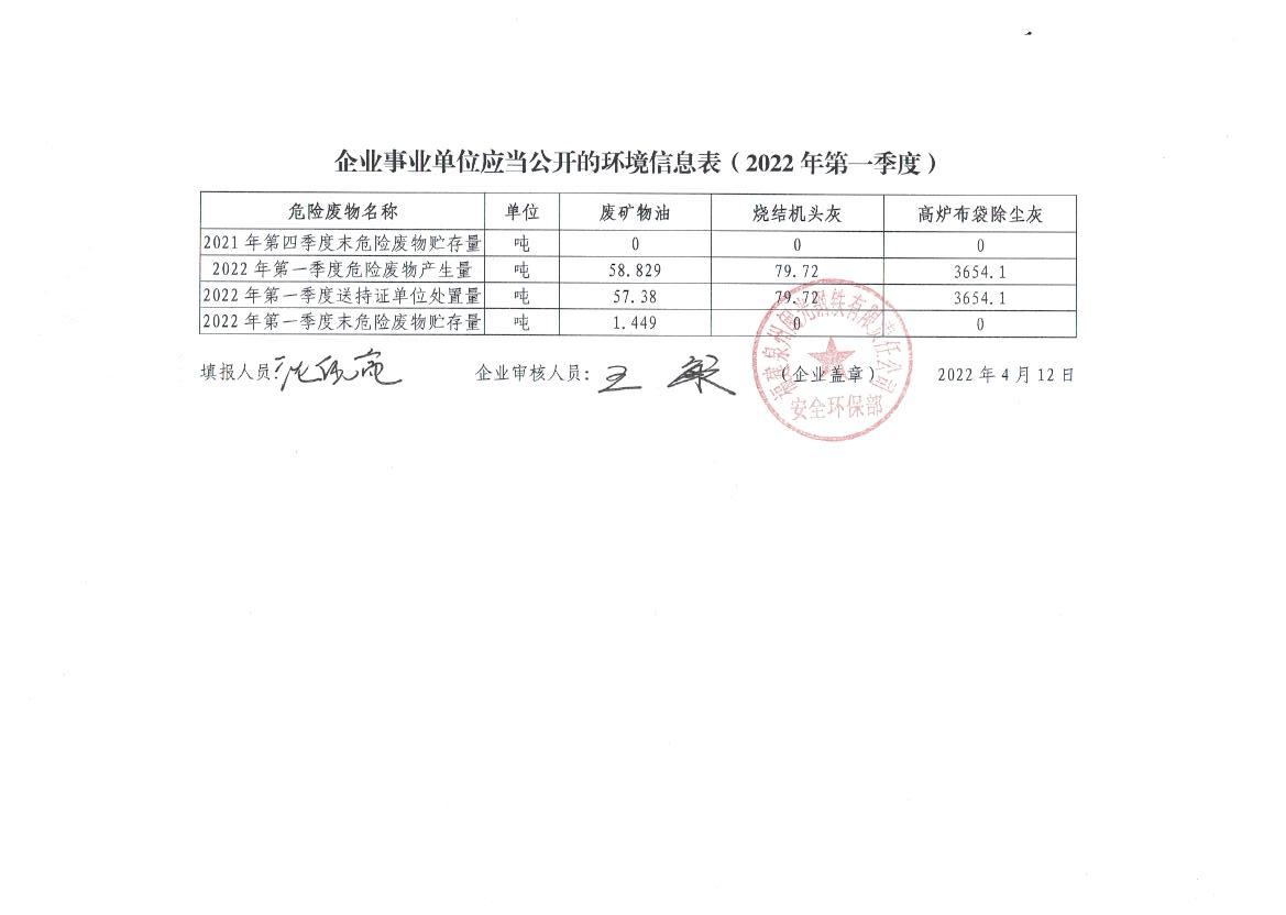 企業(yè)事業(yè)單位應(yīng)當(dāng)公開(kāi)的環(huán)境信息表(2022年度第一季度)