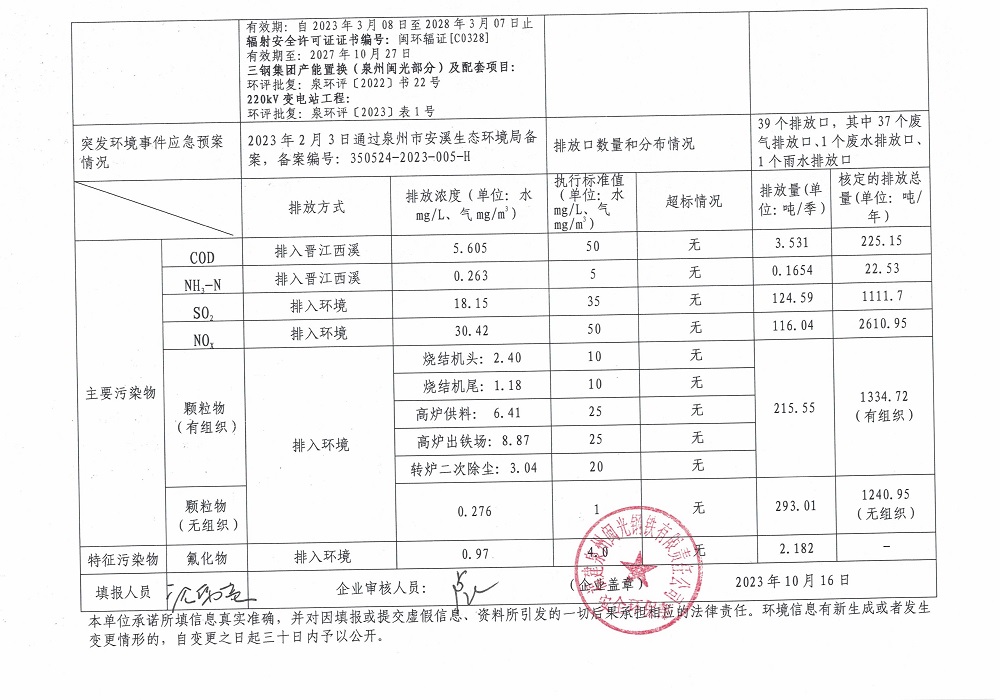 企業(yè)事業(yè)單位應(yīng)當(dāng)公開的環(huán)境信息表(2023年度第三季度)