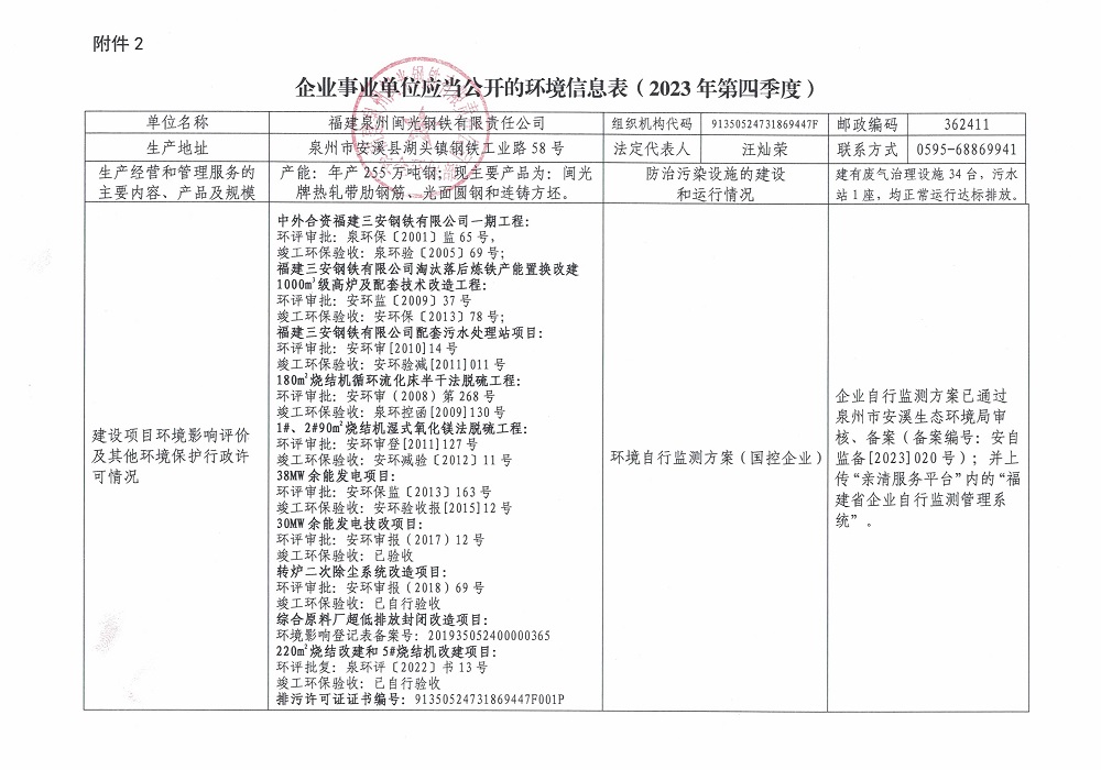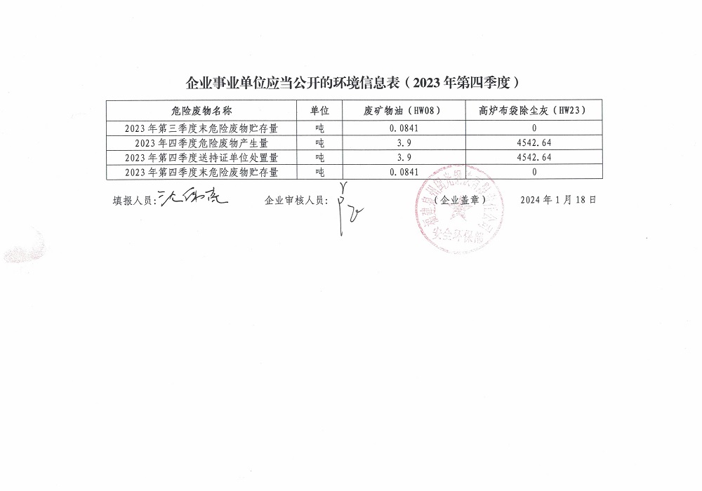 企業(yè)事業(yè)單位應(yīng)當(dāng)公開(kāi)的環(huán)境信息表(2023年度第四季度)