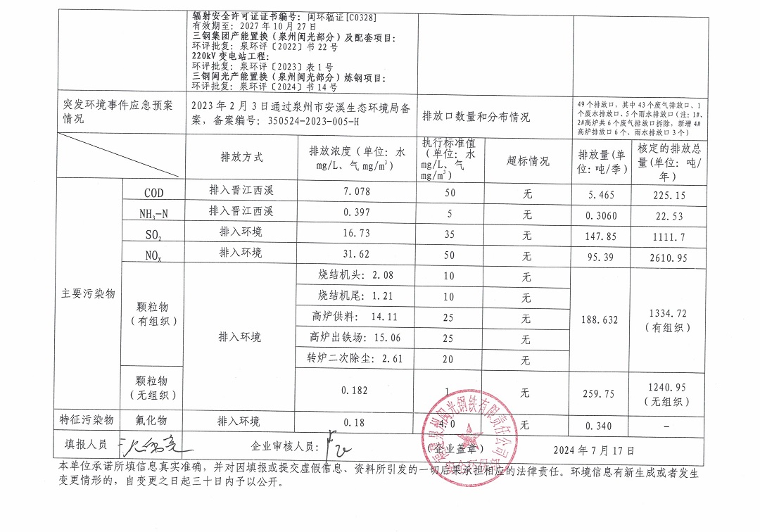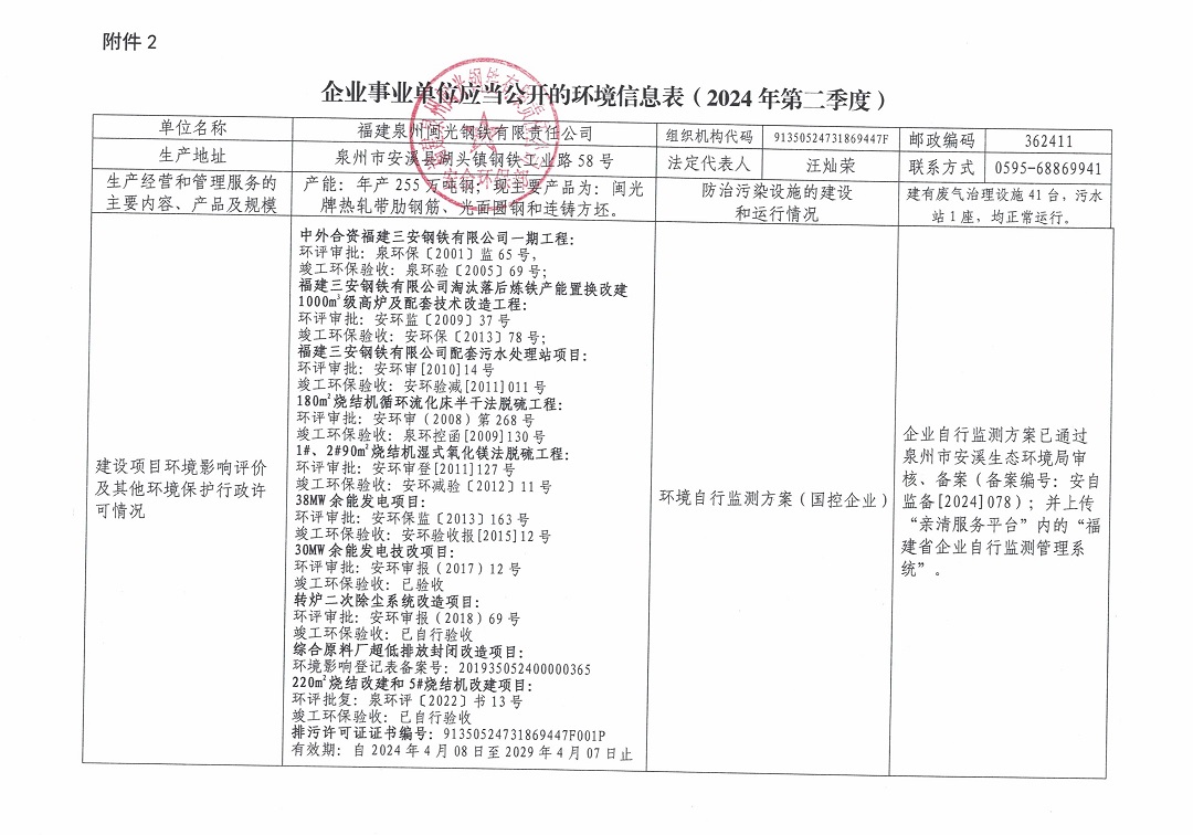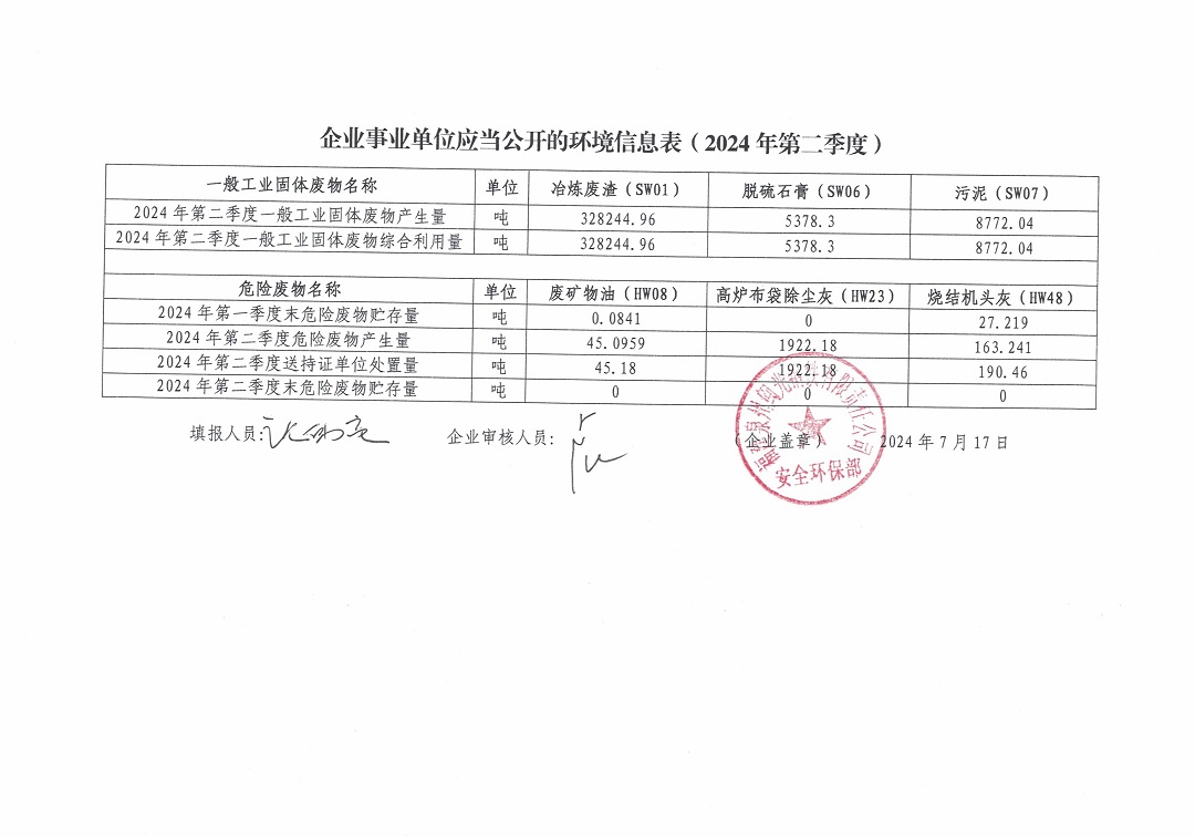 企業(yè)事業(yè)單位應(yīng)當(dāng)公開的環(huán)境信息表(2024年度第二季度)