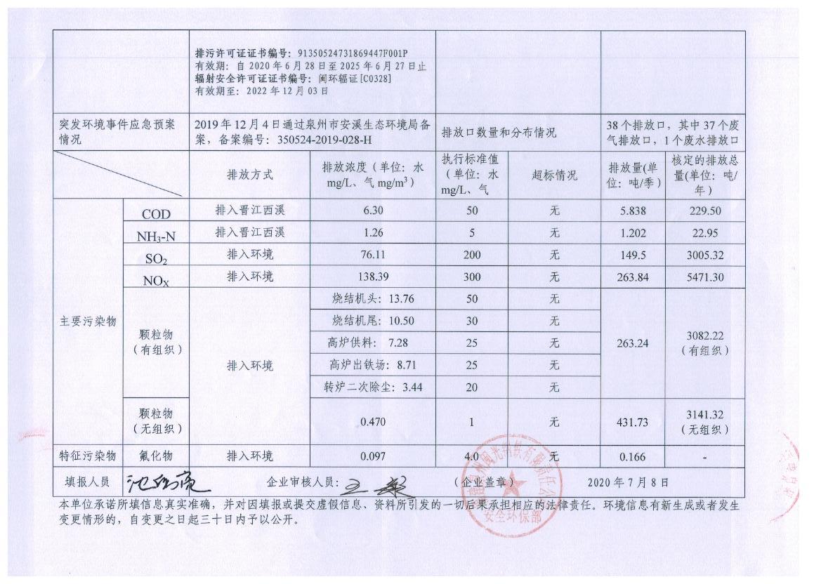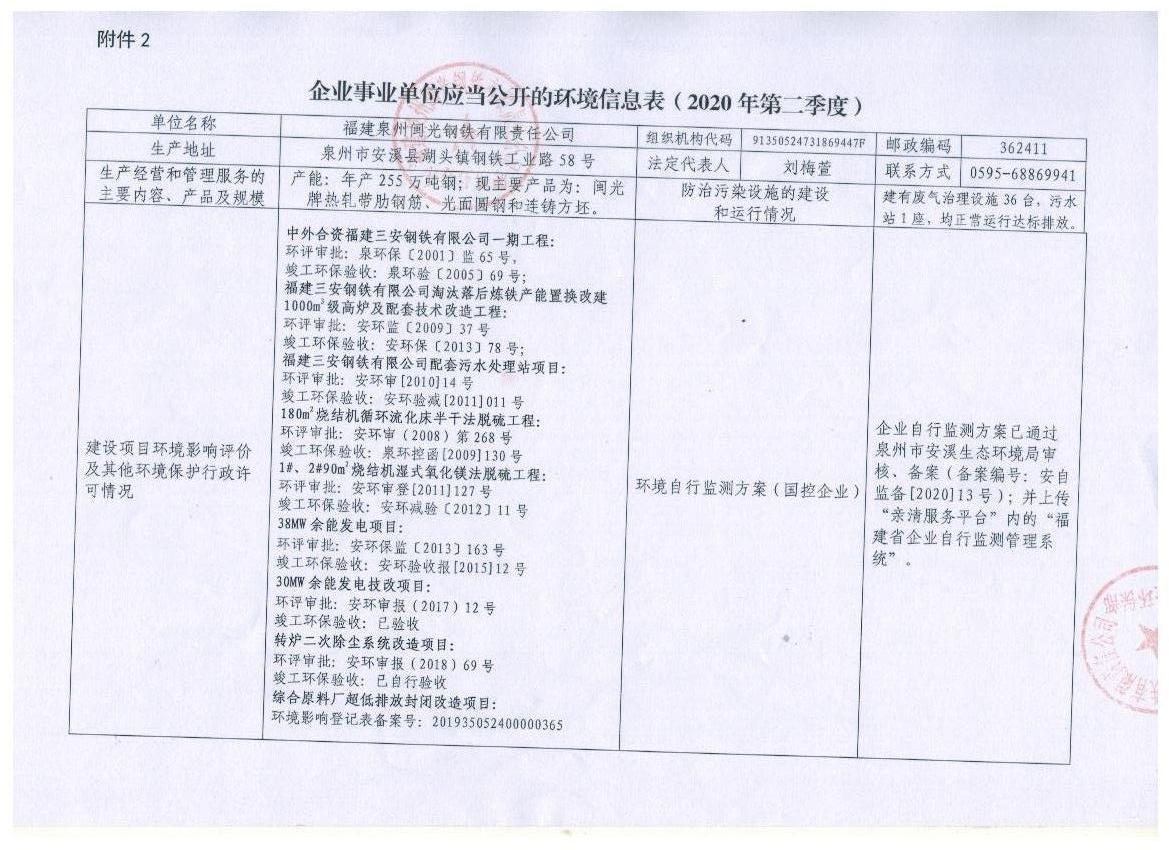 企業(yè)事業(yè)單位應(yīng)當(dāng)公開的環(huán)境信息表(2020年度第二季度)