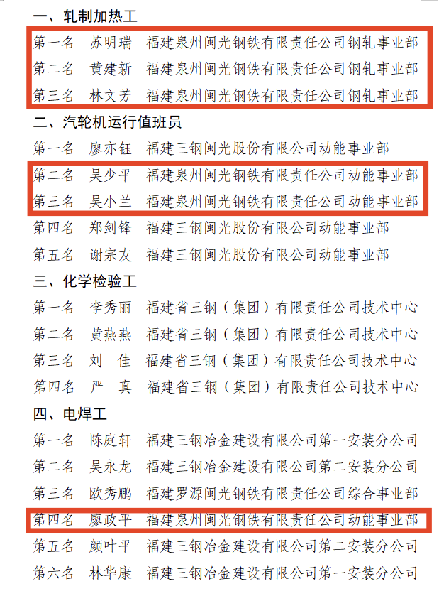 日前,福建省三鋼(集團)有限責(zé)任公司與三明市總工會聯(lián)合主辦的2025年第八屆福建省三鋼(集團)有限責(zé)任公司職業(yè)技能競賽圓滿結(jié)束,泉州閩光榮獲佳績,其中軋制加熱工包攬該工種前三名。
