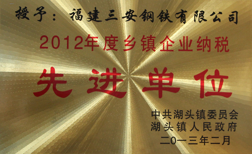 2012年度鄉(xiāng)鎮(zhèn)企業(yè)納稅先進(jìn)單位