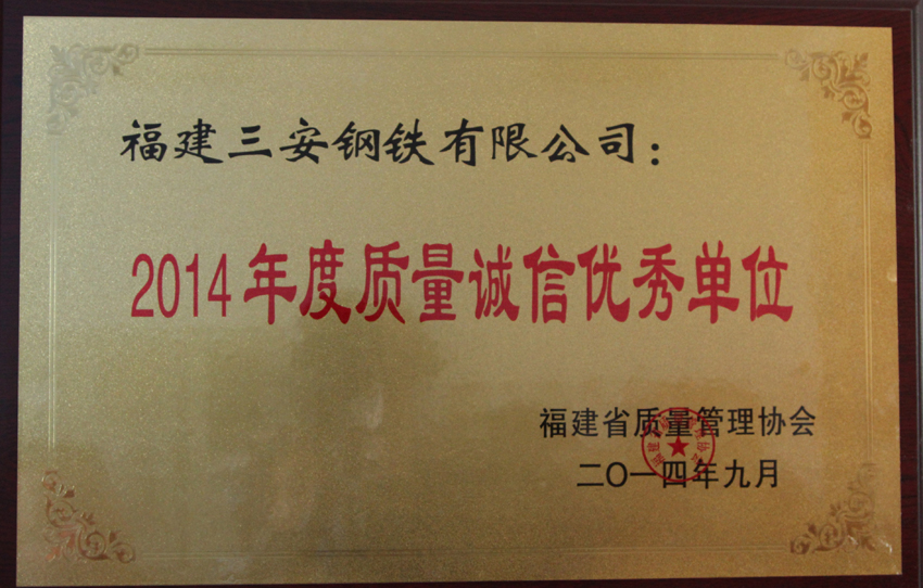 2014年度質(zhì)量誠信優(yōu)秀單位